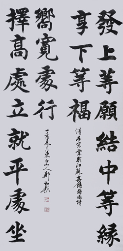 郑和新,号东白山人,57岁。中国书法家协会会员,中国书画家协会副会长兼浙江省分会会长,中华国礼艺术家协会副会长,中国领导科学研究会高层艺术研究院理事,中华艺术研究院书法院副院长,浙江省书法教育委员会委员,东阳市美术馆馆长,研究馆员。