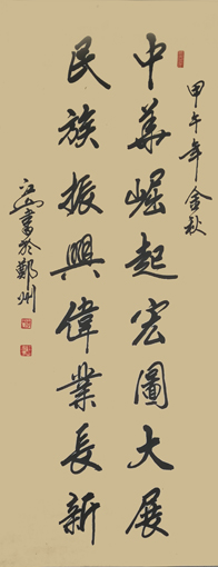 2013年九九重阳节,江山先生将99幅价值200余万元的“尊老、敬老、爱老”的主题楹联书法珍品一次性无偿捐赠给了世界老年健康事业联合会。