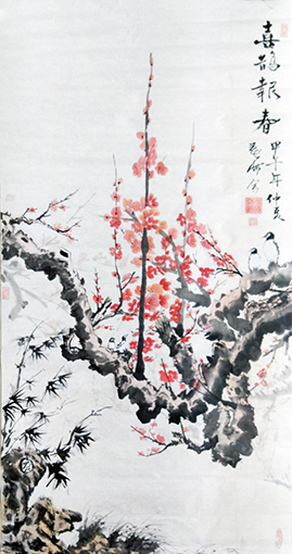 郑茂海作品《喜鹊报春》规格:136cmx70cm