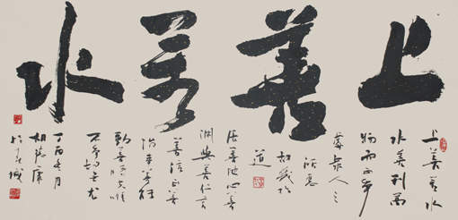 中国企业报道艺术资本编辑部点评:胡德康幼年经历坎坷,却成就了他坚毅乐观的品德,工程师出身的他严谨执着,对待自幼痴迷的书法亦是如此。虽未拜师名门,却自我探索和尝试,自有胡氏风格。他擅行、草,兼写隶书。他的作品源于深厚的传统功底,入笔透力,结构严谨,章法布局疏密有致,墨色浓厚却不涩滞,疏朗处亦多灵透洒逸。观其作品,时如坚毅磐石,时如万岁枯藤,时有泰山压顶之气势,时有纵意驰骋之潇洒。气象万千又韵致高远。使观者流连忘返,回味无穷。