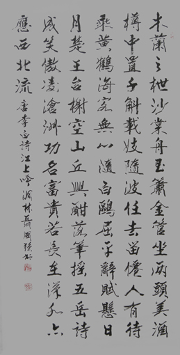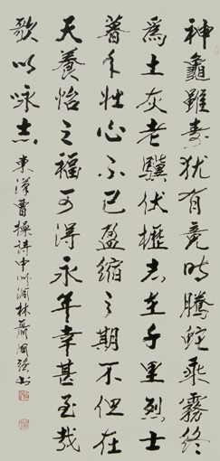 聂国强,字毅甫,号洞林居士,一九四一年九月生,河南荥阳人。毕业于中国书画函授大学研究班,受教于欧阳中石等。善楷、行、隶书,尤精小楷。书法师古不泥古,敢于打破常规,完全依凭个人审美标准广采博取。书作传统功力深厚,清健挺秀,格调朴雅,法度严谨,所书榜书把欧字结体与柳字用笔巧妙地糅和在一起,极富意趣。2000年获“世界华人艺术家”称号。2006年《中国收藏》曾以“独具一格的书法艺术”为题进行了推介。作品在全国和国际展览中多次获奖,并入刻多处世界级和包括奥运纪念碑林在内的国家级碑林。同时还被包括北京人民大会堂在内的海内外广为收藏。《人民日报》、《中华名人》、《鉴藏》等多种报刊也都进行过宣传报导。书作和传略已被分别收入《中国历代书画名家辞海》、《世界名人录》、《世界人物辞海》等数十部辞书。2006年被评为“百名作品最具收藏价值艺术家”。2008年以来,又被权威部门分别选入《影响中国100位艺术大家》、《中华传世名家》系列专集、《当代美术史•中国书法》、《中国荣誉•向世界推荐的国礼艺术家》、《中国气派•走向世界的艺术大家》、《大人大艺一一益师益友》(沈鹏•聂国强)卷、《当代艺坛骄子》、《全国书协美协主席精品选集》、中国高等美术院校教学范本一一《中国当代书画名家巨匠大画册》、《中国艺术大家》国礼珍藏册、《中国书法名家全集》、《当代艺术经典》书画集、《中国当代书法史》、《世界艺术通史》等。格言入编《中华名人格言》、《中外哲理名言》、《中华名言词典》等格言典籍。同时还被评选和授予“中国百位杰出书法家”、“世博中国题贺艺术名家”、“感动中国艺术人物”、“共和国杰出书画艺术家最高荣誉成就奖”、“文艺百年传世人物”、“辛亥百年-百位中国艺术大家”、“当代中国书画实力派代表人物”、“中国当代文学之星”、首批文化界 “国家形象大使”、“非物质文化遗产传承人物”、“终身成就艺术家”、“世界艺术大使’’等。2016年,作品和传略入选《一带一路一国礼》和《中国当代艺坛大师》中国外交十人国礼卷。同时,作品和有关资料还被选入文化部推荐教材—全国高等艺术职业教育系列教材—《中国艺术教育大系》并被授予“中国现代艺术教育家”荣誉称号。2016年,作品和传略入选《一带一路一国礼》和《中国当代艺坛大师》中国外交十人国礼卷。同时,作品和有关材料还被入选文化部推荐材料——全国高等艺术职业教育系列教材——《中国艺术教育系列》,并被授予“中国现代艺术教育家”荣誉称号。2017年,作品又被国家烧制在国礼重器——一带一路.传世国瓷上。现为“世界华人艺术网”艺术顾问、华夏文艺出版社名誉社长、中国书法家协会会员、中国书画艺术研究院院长、人民美术报社副社长。