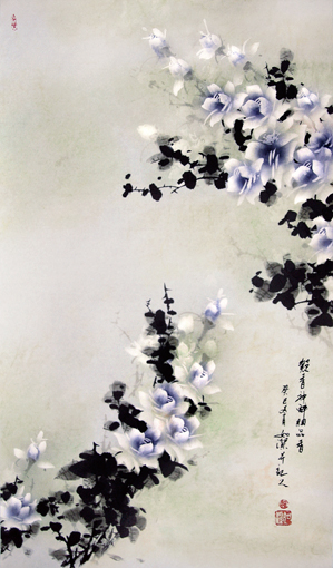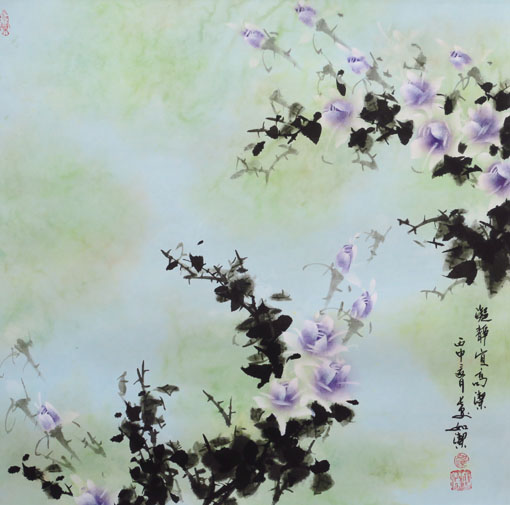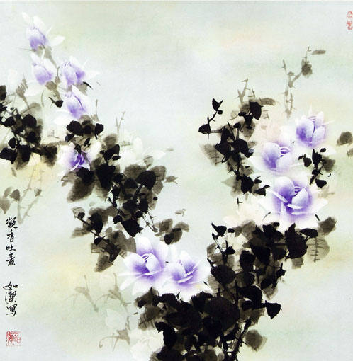 如洁是一位沉静笃定的画家,不管生活如何变数,几十年如一日沉浸在月季的创作氛围里,本身就是一种精神的可贵,他以活的月季为标本,细细观察,细细揣摩,细细把月季花的成长过程默记于心,再加上牢实的国画基本功,牢实的砥砺前行勤勉奋进,牢实的与古代国画名家神视在学习临摹中的交流沉思,牢实的秉承了传统的文化大观又能用传统艺术的底蕴绾结创作月季的形象性立体性,终就高达于他月季作品的翩翩而舞,脉脉闻香,幽幽化情,融融明理,生动成轻轻盈盈洁洁然然的素雅之美。