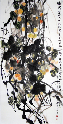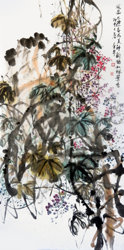 道金平作品《风姿不逊春花美》规格:68cmx138cm.2016年