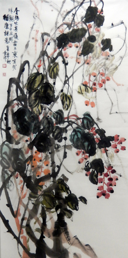 道金平作品《海棠》规格:68cmx138cm.2015年。