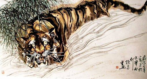 在画虎的同时还兼学人物、山水、花卉、丰富了配景能力。由于掌握绘画技能较广,笔法、墨法涉猎广泛,在虎纹和配景上逐渐形成了个人独到之处。近年在精研我国历代各家画虎特点的同时还逐渐吸收了一些西洋画法,融合到传统画法中,使自己的画风更加鲜明,所画的虎既有传统功力又富于现代感,力图反映民族文化的深厚和时代的阳刚精神,在京城画界有“陈老虎”之誉。