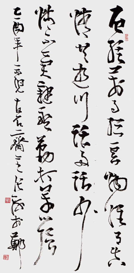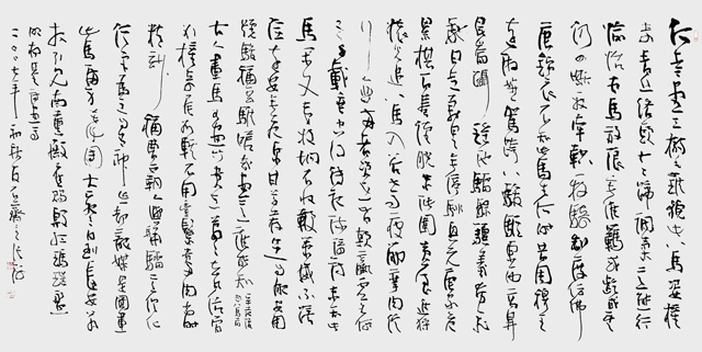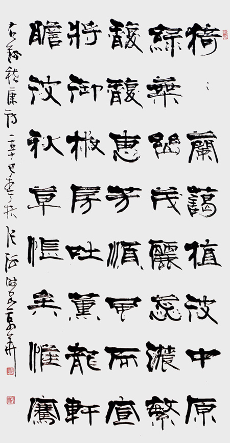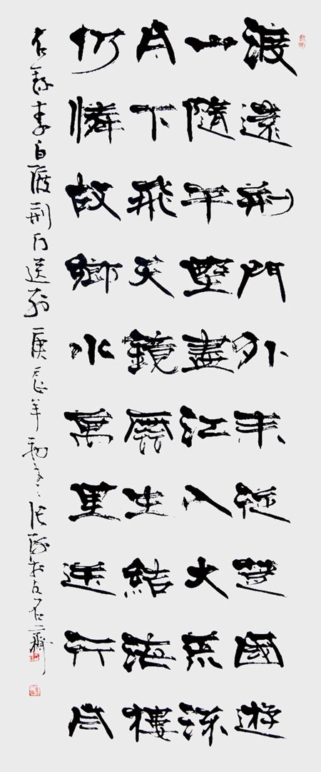 张海四体皆能,成果突出,具有强烈的创新精神,以隶书和行草最著。其隶书以汉碑为本,后潜心汉简,继而融合行草,最终自成一家,被书界称之为草隶。1987年即为日本专业刊物介绍,其行草书1992年获第五届书法篆刻展览全国奖。1990年以来陆续出版了《张海隶书两种》、《张海书法》、《张海新作选》、《张海书法精品选》、《张海书增广汉隶辨异歌》、《佳作解析—张海行草书苏辙黄州快哉亭记》等。沈鹏等书界权威对其为书为人的评价,收录在《创造力的实现》一书中。