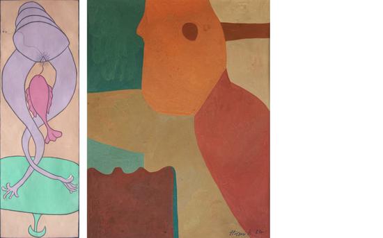 iasih《Tali KBku di Caplok Ikan Dalam Mimpi》(1999),图片由艺术家和Gajah艺廊提供;右:Mohamed Hamidi《Composition 1964》(1964),Mohamed Hamidi