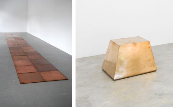 左:卡尔·安德列《Cyprigene Sum》(1994),图片由艺术家和Alfonso Artiaco艺廊提供;右:竹冈雄二《Golden Base》(1987)
