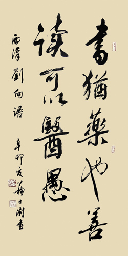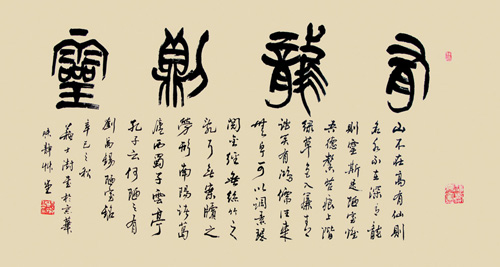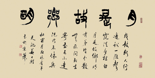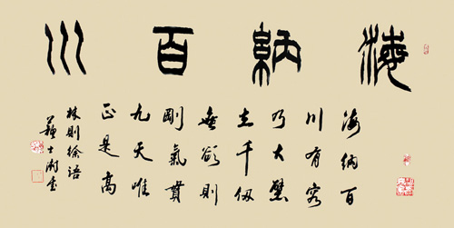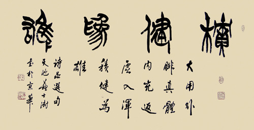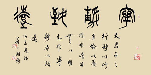 兼习诸体,善以鸡亳作篆书、隶书,饶有特色。