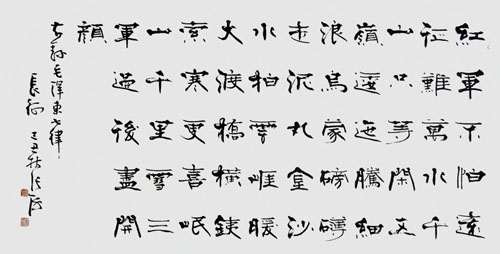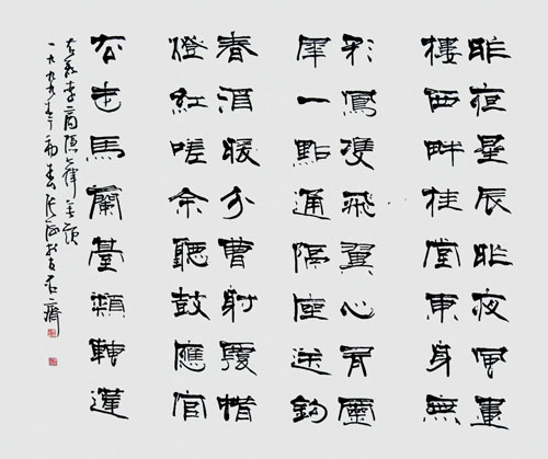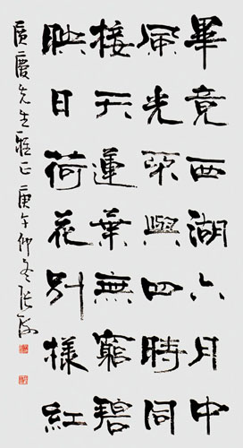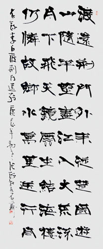 张海四体皆能,成果突出,具有强烈的创新精神,以隶书和行草最著。其隶书以汉碑为本,后潜心汉简,继而融合行草,最终自成一家,被书界称之为草隶。1987年即为日本专业刊物介绍,其行草书1992年获第五届书法篆刻展览全国奖。1990年以来陆续出版了《张海隶书两种》《张海书法》《张海新作选》《张海书法精品选》《张海书增广汉隶辨异歌》《佳作解析——张海行草书苏辙黄州快哉亭记》等。沈鹏等书界权威对其为书为人的评价,收录在《创造力的实现》一书中。