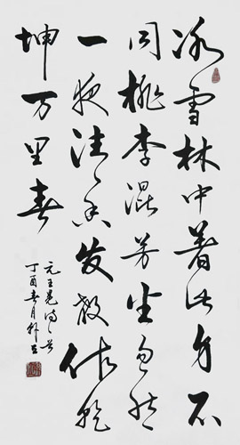 韩立,汉族,一九五零年出生。现任:中国诗书画网艺术家委员会副会长,中国书画交易中心常务副主席,英国牛津大学北京艺术分校书法教授,自幼在父亲的指导下学习书法,曾多次荣获部队和地方及国家书法大奖、二零一六年荣获“全国艺术大赛”书法一等奖,和第七届全国诗书画家“羲之杯”书法一等奖,并被中国邮政特选为优秀书法精品邮票和邮集发行全国,中国之声时代周刊,第三期特刊了其作品,人民美术报连续刊发专题名人作品,(总字第一百九十七期)和五月第四期名人作品专刊。其作品全国各地都有收藏;并远播亚、欧、美很多外国友人通过各种渠道求字不断,日、美、韩、加拿大、澳大利亚、新加坡、新西兰、英国、德国等。