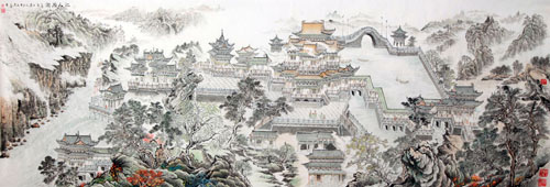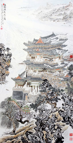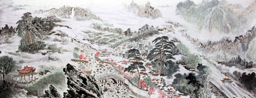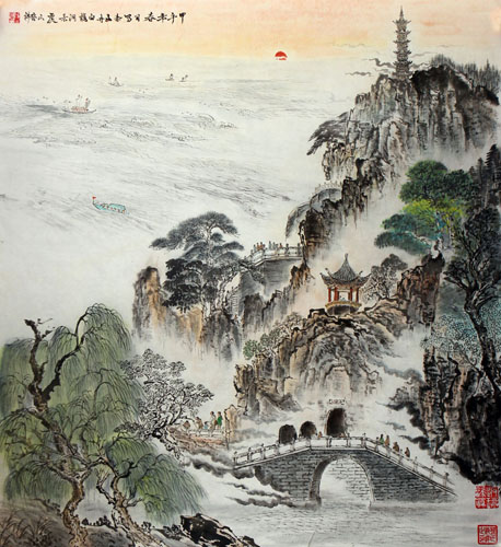 松林先生有幸得到了上海陆俨少得意门生王震铎老师的赏识,于1991年收于门下,孙先生即精心研究陆派绘画艺术,并且得到陆老先生的亲自指点,并把虞山派风格、陆派艺术风格溶化在一起,发展成自己独特的山水艺术风格,继而也成为中国画大师、画坛泰斗陆俨少老先生的再传弟子。孙先生自八十年代初,精心研习宋、元、明、清范本后,经陆老先生等指点,对虞山派王翚的风格精心学习,水墨山水,1994年为日本友人作宋代赵佰驹笔意的巨幅通景水墨山水画,现收藏于日本国内。其中参加过多次展览并得奖,并创造了中国四大名楼,兼工带写的作品。特别用了三年的时间,创作了一百名历代帝王图卷,全长六米宽四十厘米左右,有文字约三千多字和各代时期重大事件,用大予言诗句赋予画面之上。历代皇帝图卷,并配有帝王的简历,现被南京大学永久收藏,北京大学编辑部王先生收藏。后被大陆收藏大家为其古建筑大厅作五米长的巨幅作品《长江三峡图》。山水喜欢大幅写生作品,有《峨眉金顶入云霄》《大好河山》《石猴观海看日出》《玉屏仙境》《迎客松》等六——八尺的大幅风景画,先生所创作的金碧山水《中国四大名楼》均成为日本友人、台湾及新加坡收藏家们最热门的收藏品。