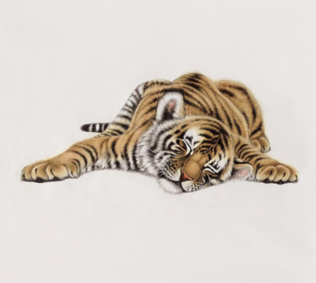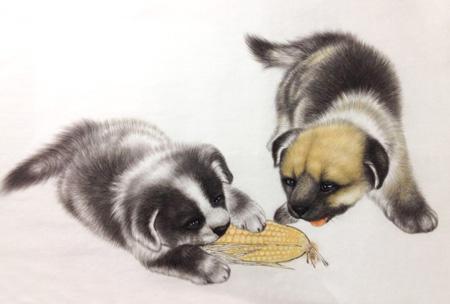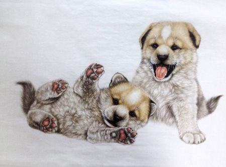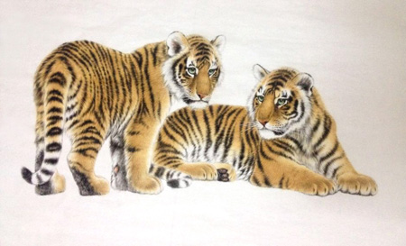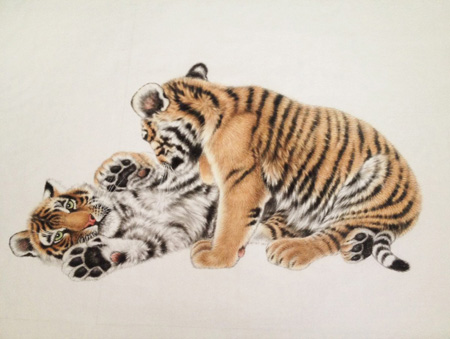 陶润文的工笔作品除了追求传统工笔动物、花鸟画用笔生动,渲染层次丰富、形象细腻逼真的传统画绘画风格外,他的过人之处还在于在传统的基础上不断加入创新,从而使其工笔画具有了新的生命力。所谓“积之愈厚,发之愈佳”,深厚的国画功底奠定了陶润文工笔的良好基础,形成了颇具个性的笔力和笔墨语言,并铸就了作品的气度。