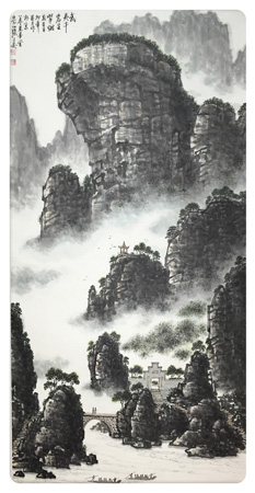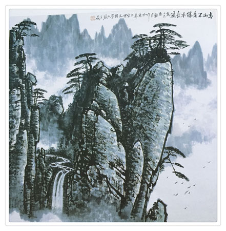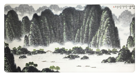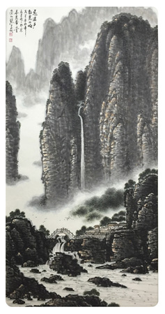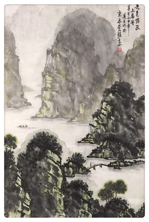 纵观张子安先生的大量山水画,其画面透出的气质与气韵均给人以朴厚而灵动的心里体验。自然山水的形与势、意与境通过画家的美学和人格修养得以理性化的营构和升华,给人显现出仁厚、坚毅、空灵、放达而又俊美的视觉意象。显然,张子安坚实的笔墨功夫和传统文化的沉淀。(人民美术编委会)