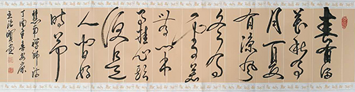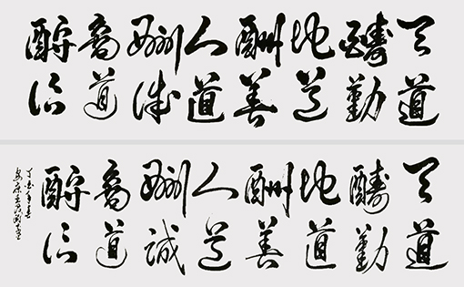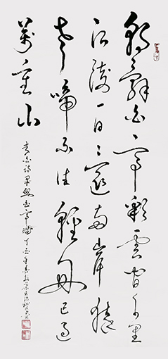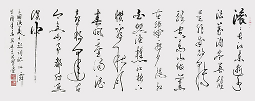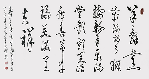名家点评:王治贤先生的作品在整个章法幅式驾驭上面,艺术感觉很好,写出了整体气势。书的运笔,中、侧锋互用,藏锋、露锋之妙,不可捉摸。转折纹丝不乱,显示出深厚的功底。字字独立,偶有连体。用笔破而愈完纷而愈治,飘逸愈沉着,遒劲爽健。很丰浓的墨、很枯竭的墨,形成强劲的对比,增加了整幅作品强悍的冲击力。国家正处在一个经济大发展的时代,也是科技大发展的时代,更是文化大发展的时代。中国几千年的文明历史,书法占据了不可取代的位置,它是文化,是艺术,是不可丢弃的国宝。望王治贤的书法作品继续坚持自我风格和特点,与时俱进……引领中国书法的发展。