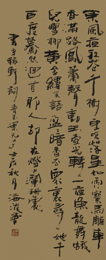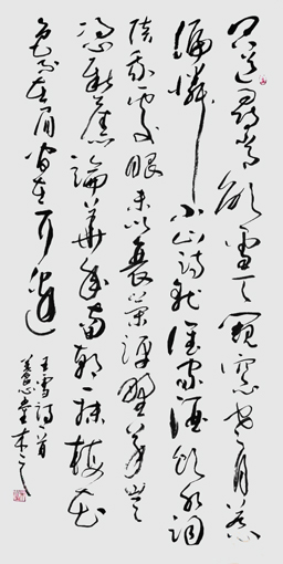 编者按:冯海波先生擅写草书,观其作品,稳重见细腻,端雅中又洒逸。运笔流畅自如,用墨浓厚,不见涩滞。通篇作品情采超逸肃散,稳中洒放,沉实凝厚,在冯先生的草书中交相杂糅着,宽博开阔和纵逸疏放,两种气韵。若以“笔随心走”来论,他把心与笔很好的交融在一起,并随胸中思情化为笔端风华。