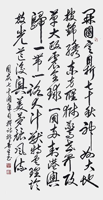 郭寿生,1947年出生,字德艺,福建省福安市人。自幼喜好书法,数十年临池不辍,先后学习了隶、篆、楷、行、草诸书,汲取养分,博采百家之长,结合自身条件,有的放矢地消化吸收,在这基础上,重点临二王行草帖和怀素草书帖。退休后,更是倍加勤奋,努力临帖不休,并参加老年大学书法学习班,在书法家郑復赠老师的指导下,从理论和实践上更系统地进行学习,并拜著名书法家缪建荣为师,重点学习其点划、章法及书法与音乐有机结合,融音乐于书法之中,墨舞律动,使书法及书法作品有长足的进步,同时,多年来坚持参加各种书法作品展活动,不少展品获得荣誉,深受欢迎。