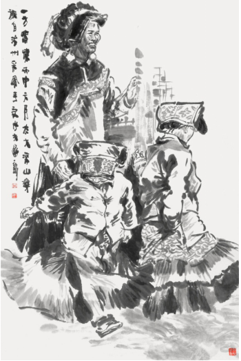 王家训的画风贯通了传统与现代,神韵生动,其意象、境界和笔墨之美,显现出特有的艺术魅力,在当代画坛上独树一帜。他一方面深入传统,深入传统的艺术精神、审美取向、语言方式和技巧,洞察中国画的精髓;另一方面反复走向生活,走向各民族普通人的日常生活,寻求和表现他们的可贵品质和文化精神。