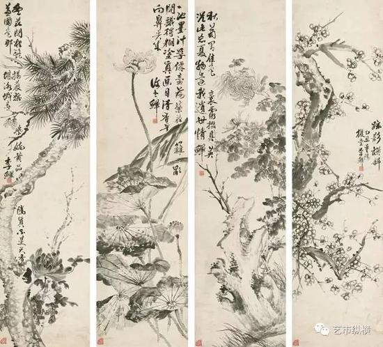 陈半丁早在1956年就在北京举办个人展览,与齐白石齐名。事实上,早在民国时期,陈半丁的作品在市场上就备受追捧,不仅流通好,而且画价甚至还高于齐白石作品。其与齐白石合作作品,在拍场上均有较好表现。如其与齐白石合作的《富贵长青》立轴,曾作为国礼由毛泽东签名赠与印尼前总统苏加诺。苏加诺去世后,此画辗转流回中国,在2005年北京翰海春拍上以2035万元高价成交。2011年北京荣宝春拍中,陈半丁、齐白石合作《花鸟四屏》以324.8万元成交。2014年北京翰海春拍上,齐白石、陈半丁作《搔耳图》以1265万元成交。