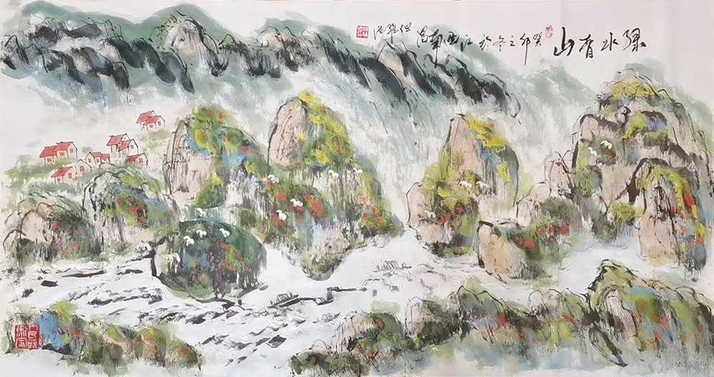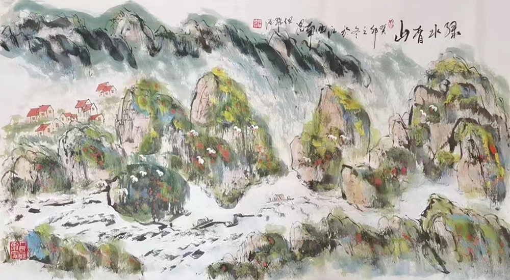 巨幅山水画《井冈山颂》660X220cm捐赠天安门管理处收藏。