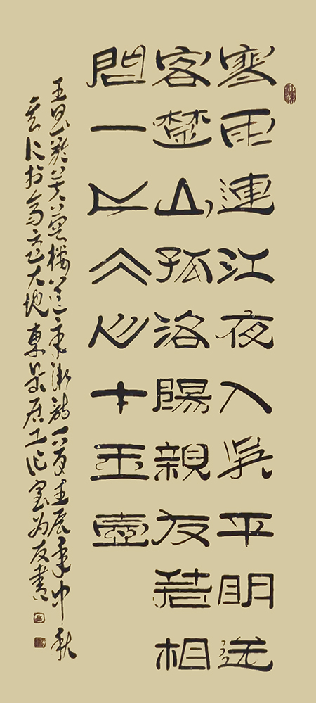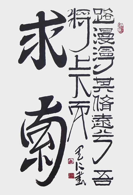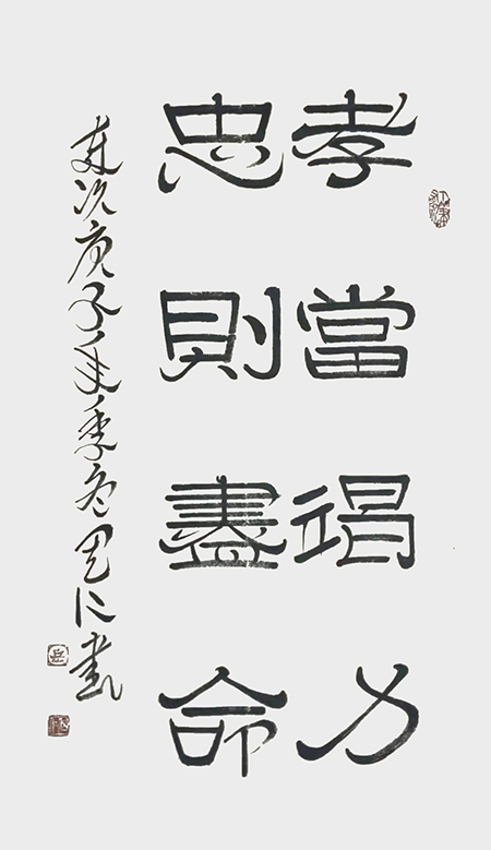 受齐鲁文化熏陶,自幼习书,勤勉刻苦,数十年寒暑不辍,其间,临碑摹帖,出唐入汉,撷花酿蜜,博采广学,真可谓:皓首穷书为国萃,血汗育成翰墨香。更为特别之处,常年潜心专研《张迁碑》《西狭颂》《石门颂》《泰山经石峪金刚经》,显赫的成就更得益于刘炳森、沈鹏、欧阳中石等诸多大师的亲临教诲与指导。曾多次与启功、沈鹏、欧阳中石、刘炳森、范曾、邹德忠、黄永玉、刘文西、靳尚谊、史国良、冯远、霍春阳等名家合作出版大型书画集。
