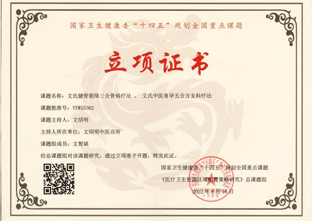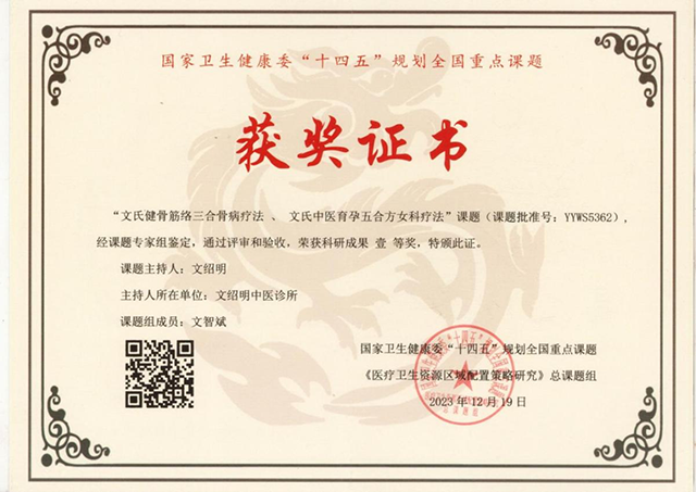 为提升专业水平,不断拜访名师,多次参加中医学术会学习交流,钻研传统医学。出版多部医学巨著,在国内外医学刊物上发表多篇科研论文。《文氏健骨筋络三合骨病疗法》、《外治法治疗疾病临床总结-治疗骨质增生》等论文在《医圣仲景中医药智库-民间中医人才库》、《全国中医药特色疗法大典》、《中国当代医药·传统医学创新楷模》、《中国中医药技术创新金鉴》、《全国中医外治发展论坛暨全国第六次中医外治学术年会与技术展示论文集》、《中国中医疑难病博学荟萃》等特刊。