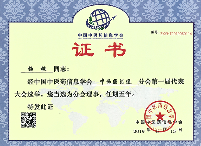 2019年6月被评为“李时珍传承人。是我国首届,也是建国以来唯一一届的“李时珍传承人”评审活动,全国只有30人荣获殊荣。