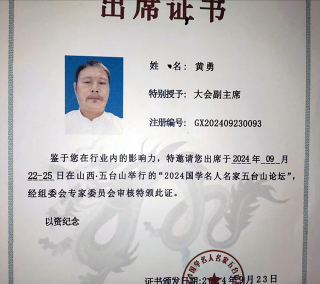 他多次受邀参加经济学论谈、地方商业论坛。近年于2018年元月参加了华夏易学家张志春教授诞生76周年学术论谈会、2024年7月出席了2024国学名家与传统文化传承龙虎山论坛,2024年9月出席了五台山举行的2024年国学名人名家五台山论坛,为论坛执行主席;2025年元月出席了北京举行的2025年国学名人名家跨年盛典论坛,也为论坛执行主席。