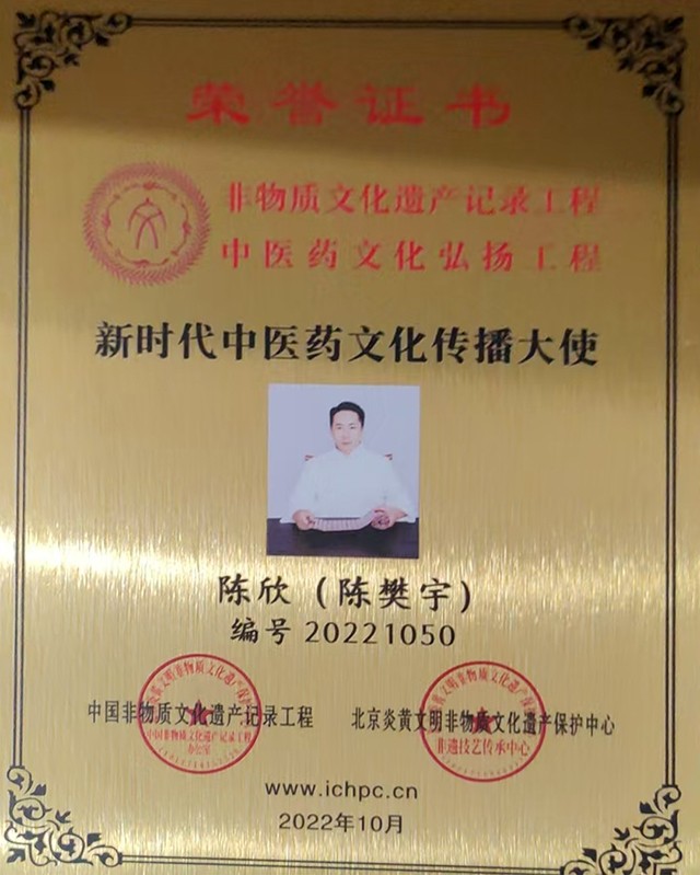 ⒀、担任第一健康报道通联部“健康中国行动·健康宣传大使”;深得中医治疗五脏六腑疾病的精华,精通祖传的五脏六腑修复和骨雕,目前有235名弟子,其核心弟子9人。