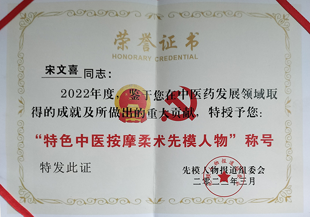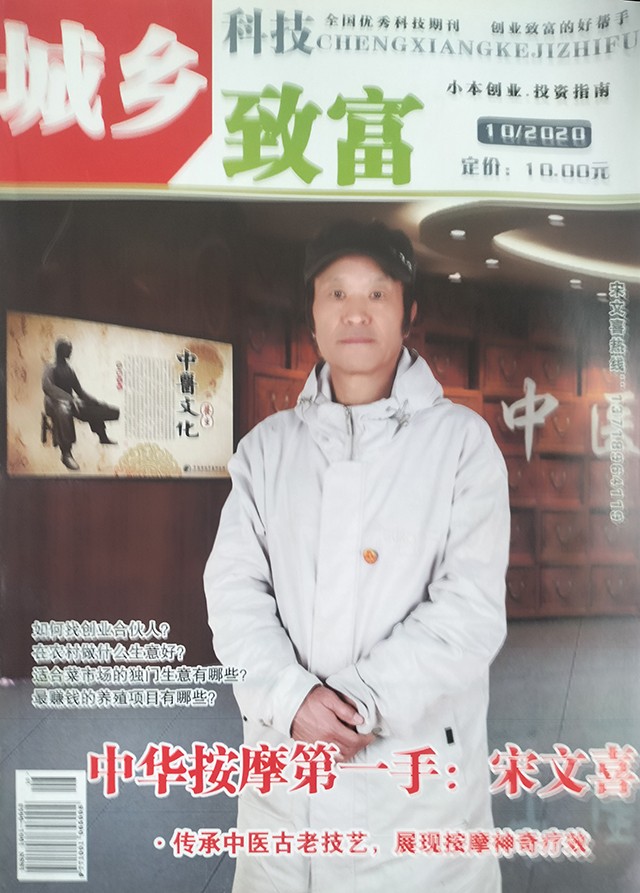 中华古方中医按摩揉术手法,央视“走进科学”专题民间按摩高手宋文喜,北京电视台青少节目“八区故事会”,还有江西卫视“传奇故事会”,河南省电视台法制频道,河南省电视台新农村频道,河南省电视台都市频道,河南省新乡市电视台,河南省卫辉市电视台,都有报道。节目中用的按摩手法是中华古方中医按摩里失传的揉术手法,中华古方中医按摩揉术手法具有救命、祛病、保健、养生、长寿、开智之效,对各种疑难病症、各种晚期重病人可在短期内康复,救人无数,百度一下宋文喜博客里有很多病历可以看到。