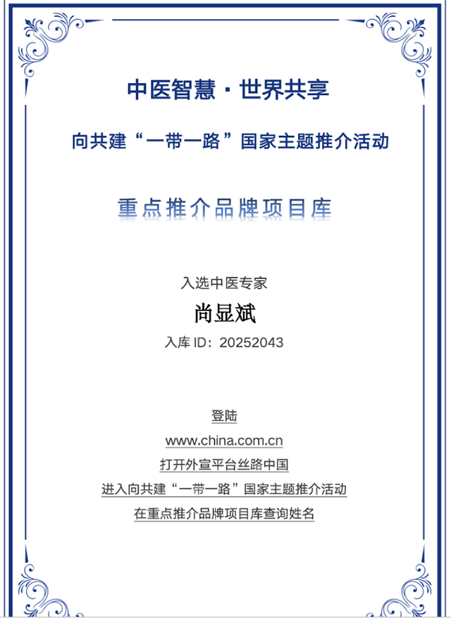 “中医智慧·世界共享”已成为新时代文化传播的重要主题。依托中国网“丝路中国”平台,该推介项目正向全球传播具有影响力、代表性和前瞻性的中医人物与机构。尚显斌作为本次入选的中医专家,以其在优生优育、健康管理及中医药传承等多个维度的综合成就,成为引领中医走向世界的新标杆。
