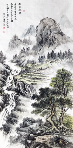 每有诗意,必然是入画之境,创作过程的感想和意念,提笔而书,题跋作诗,那是诗意与书法的融和,所以字与画的配合,苍劲有力的字体 ,美不胜收的诗句让人甜醉如梦,快意淋漓 ,每有诗意,才有画境,能把自己的思维引入水墨丹青的灵魂 ,每点,勾,染,擦 ,都是自我的表达。
