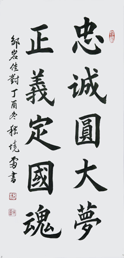 嵇境雷作品《忠诚圆大梦、正义定国魂》规格:72cmx34cm