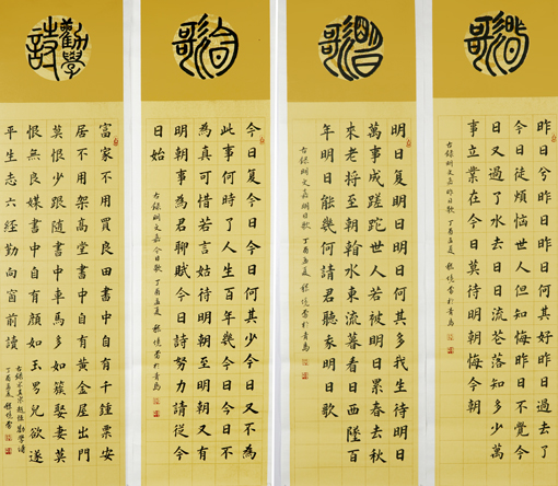 嵇境雷作品《昨日歌》《明日歌》《今日歌》《劝学诗》规格:117cmx34cmx4