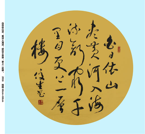 李俊生作品《白日依山尽、黄河入海流、欲穷千里目、更上一层楼》2016 规格:68cmx68cm