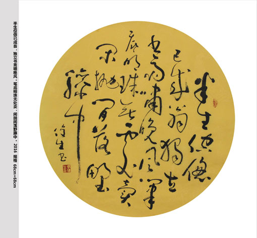 李俊生作品《半生倥偬已成翁、独立书斋啸晚风、笔底明珠无处卖、闲抛闲落野藤中》2016 规格:68cmx68cm