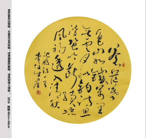 李俊生作品《苍茫暮色山如铁、万里无云月似钩、诗思潜蛩吟断续、凉风初透入清秋》2016 规格:68cmx68cm