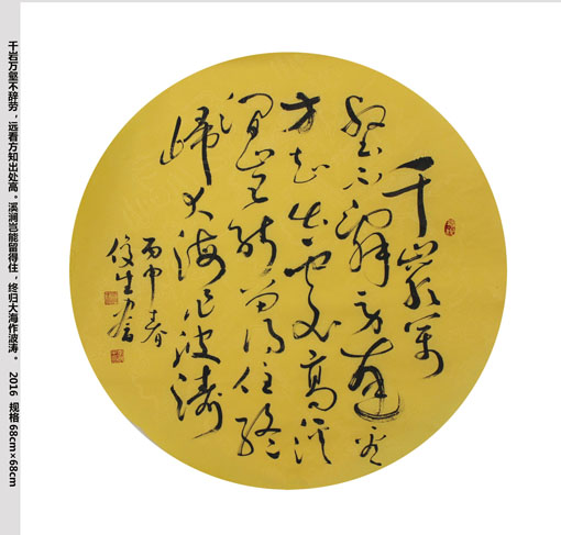 李俊生作品《千岩万壑不辞劳、远看方知出处高、溪涧岂能留得住、终归大海作波涛》2016 规格:68cmx68cm