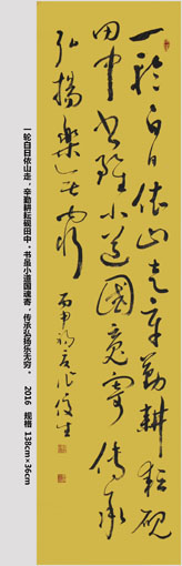 李俊生作品《一轮白日依山走、辛勤耕耘硕田中、书虽小道国魂寄、传承弘扬乐无穷》2016 规格:138cmx36cm