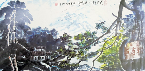 杨书英作品《狮山迎客松》规格:134cmx68cm