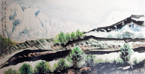 杨书英作品《未开发的雪域高原》规格:134cmx48cm