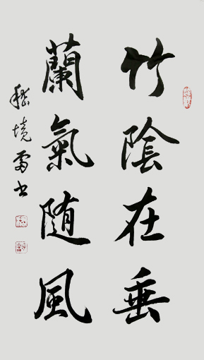 嵇境雷作品、清.李育句《竹阴在垂、兰气随风》规格:62cmx35cm
