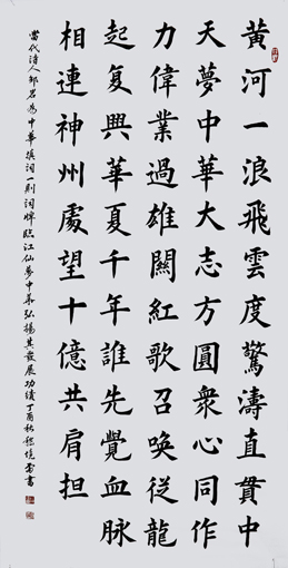 嵇境雷作品、邱璞诗《方寸春秋》规格:138cmx35cm