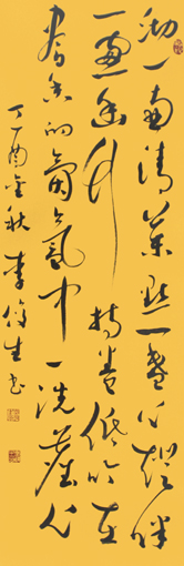 李俊生作品草书《沏一壶清茶,点一盏心灯,伴一窗幽竹,持卷低吟,在书香的氤氲中一洗尘心》规格:90cmx33cm1