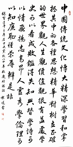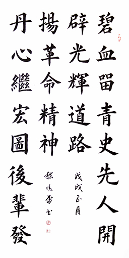 嵇境雷作品《碧血留青史先人开辟光辉道路、丹心继宏图后辈发扬革命精神》规格:138cmx70cm