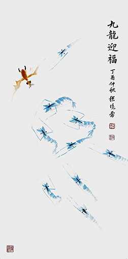 嵇境雷作品《九龙迎福》规格:138cmx70cm
