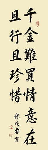 嵇境雷作品《千金难买情义在、且行且珍惜》规格:128cmx35cm