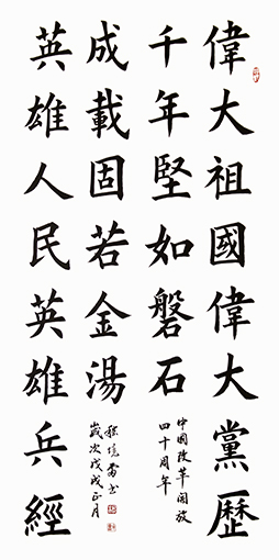 嵇境雷作品《伟大祖国伟大党历千年坚如磐石、英雄人民英雄兵经承载固若金汤》规格:138cmx70cm
