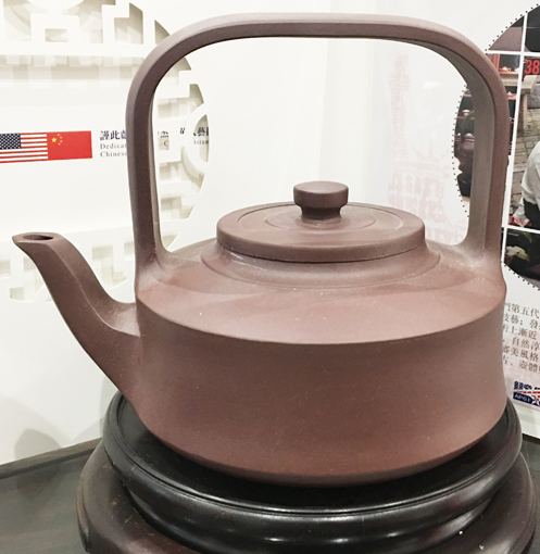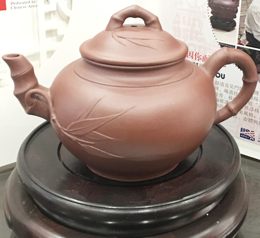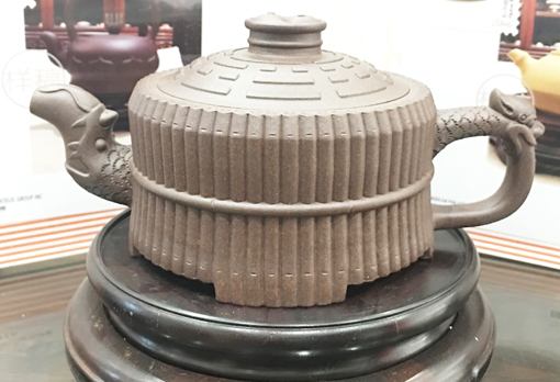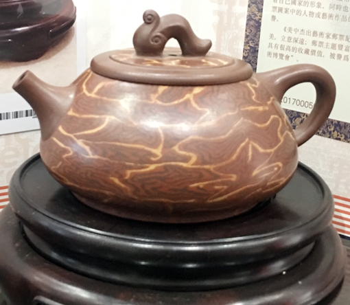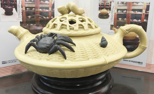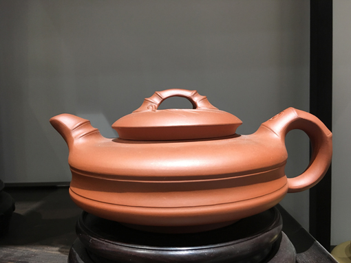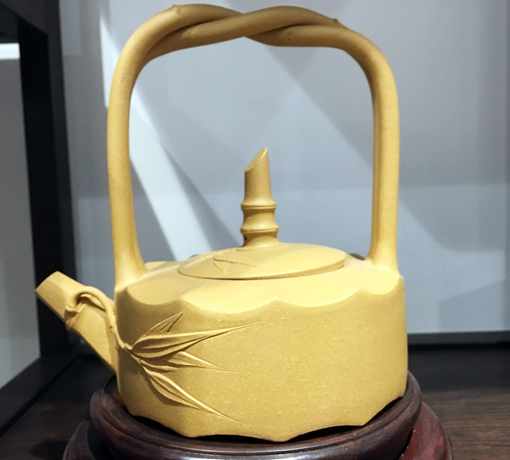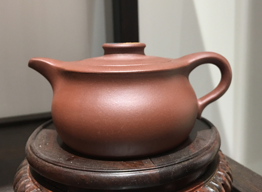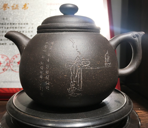 宜兴有天土,吴门出陶人。继陶瓷、紫砂已成国艺。一盈把握,诸子尽在一掬之间,上兑庄老之露、下泡儒佛之泉。禅意不看红尘事,一捧紫砂释天机。