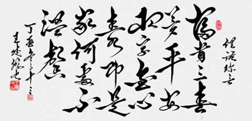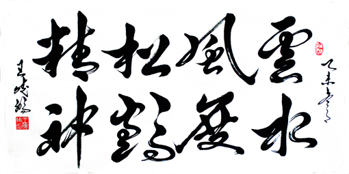 书法创作的主力军之一便是诗人,王晓鹏的诗词作品曾入选《共和国经典诗词·格言选萃》、中华诗词创作高级课本《国学经典·当代百家律绝词赋精编》等诸多典籍,荣获“中国作家金笔奖” 、“中华诗词·当代律绝词赋宗师”等诸多奖项暨盛誉。在其发表的诸多书法作品中,除自撰的楹联、格言及个别应命专题之作外,其余多是自作诗词。